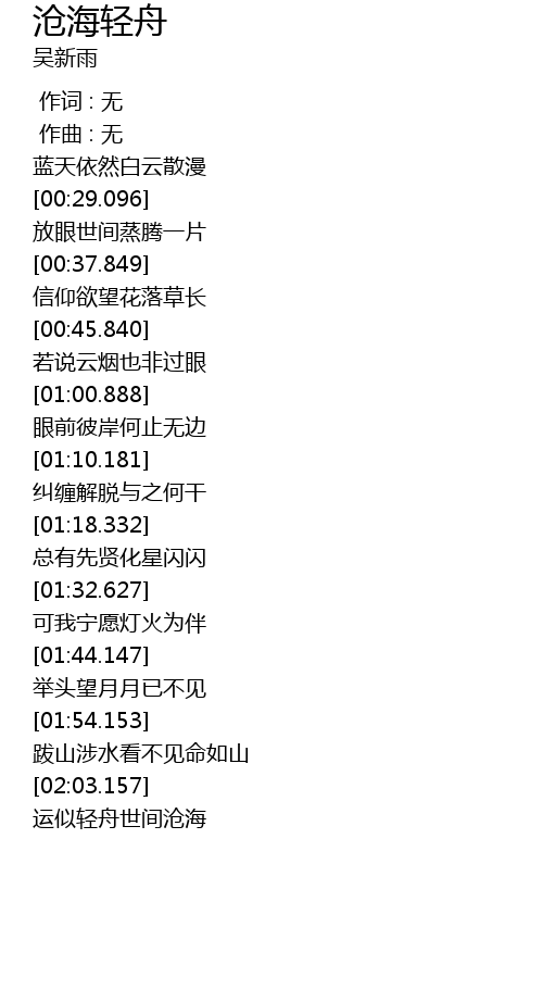 | [02:06.577] | yun shi qing zhou shi jian cang hai |