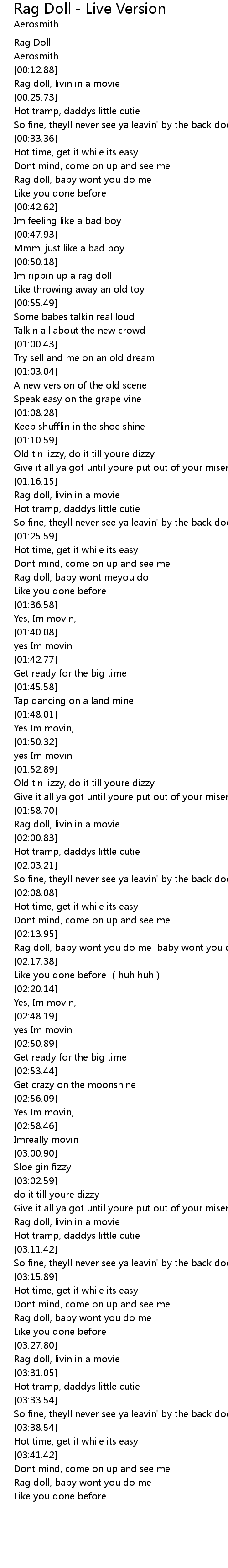 | [02:14.58] | Rag doll, baby wont you do me baby wont you do me.... |