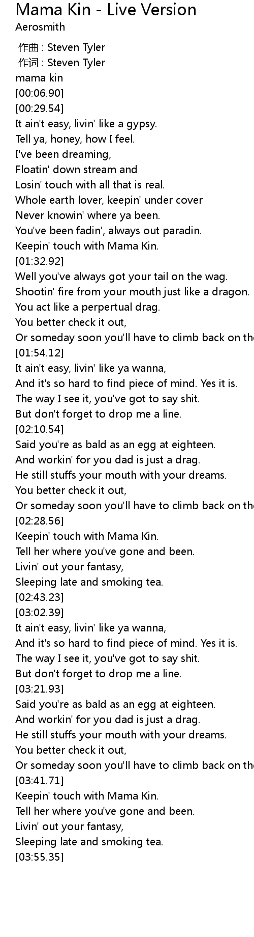 | [03:42.90] | Keepin' touch with Mama Kin. |