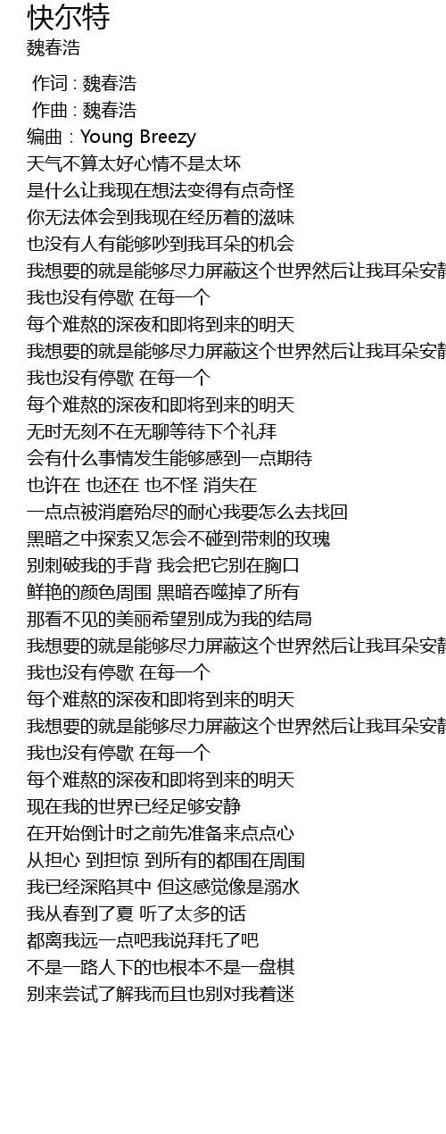 | [00:00.000] | 作词 : 魏春浩 |
