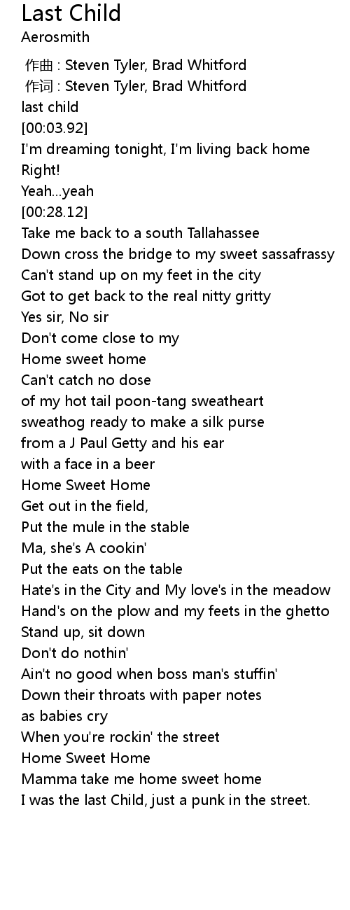 | [00:00.697] | 作词 : Steven Tyler, Brad Whitford |