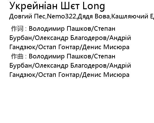 | [00:00.00-1] | 作曲 : Володимир Пашков/Степан Бурбан/Олександр Благодеров/Андрій Гандзюк/Остап Гонтар/Денис Мисюра |