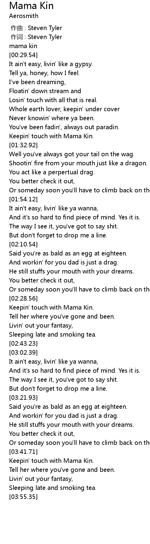 | [00:00.00] | 作曲 : Steven Tyler |