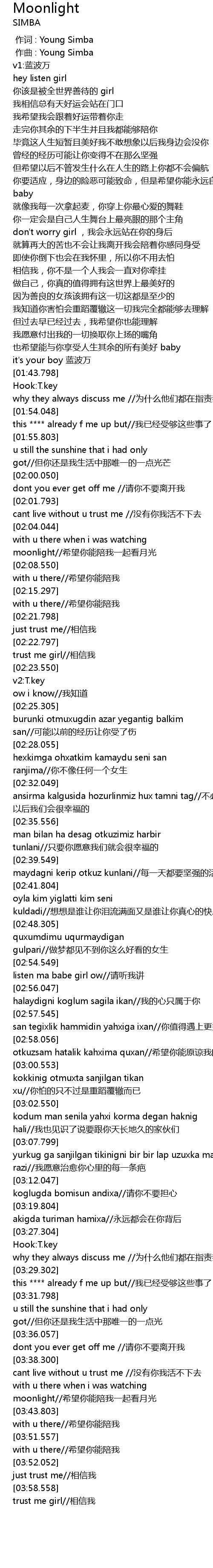 | [00:00.000] | 作词 : Young Simba |