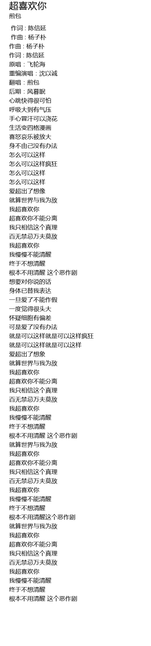 | [03:03.345] | chāo xǐ huān nǐ bù néng fēn lí |