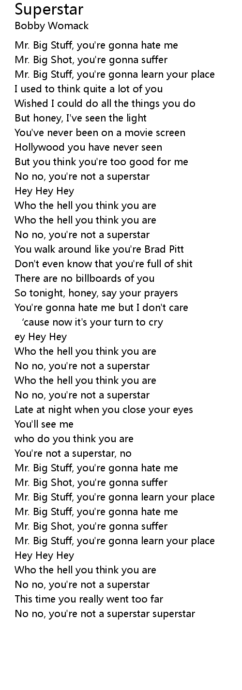 | Mr. Big Stuff, you' re gonna learn your place | |