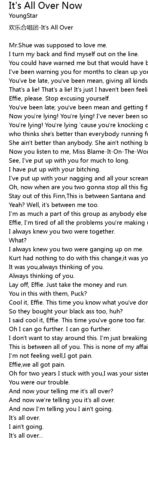 | You' ve been late you' ve been mean and getting fatter all the time. | |