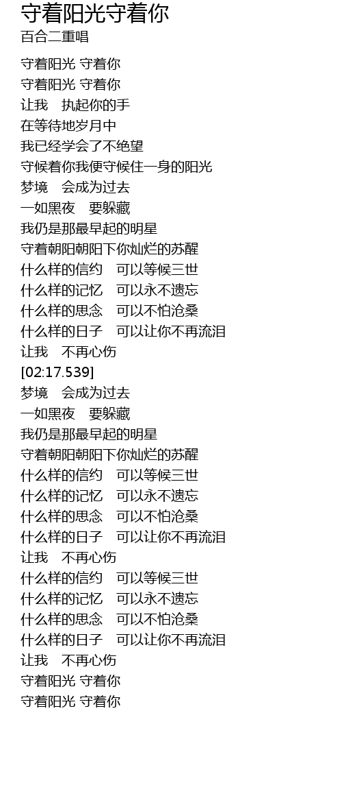 | [02:59.549] | 守着朝阳朝阳下你灿烂的苏醒 |