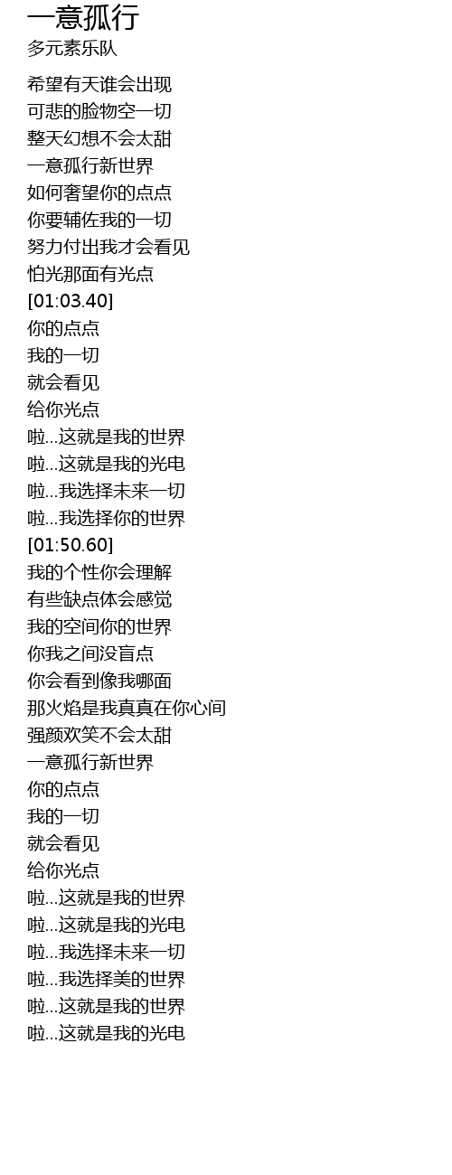 | [00:43.22] | yī yì gū xíng xīn shì jiè |