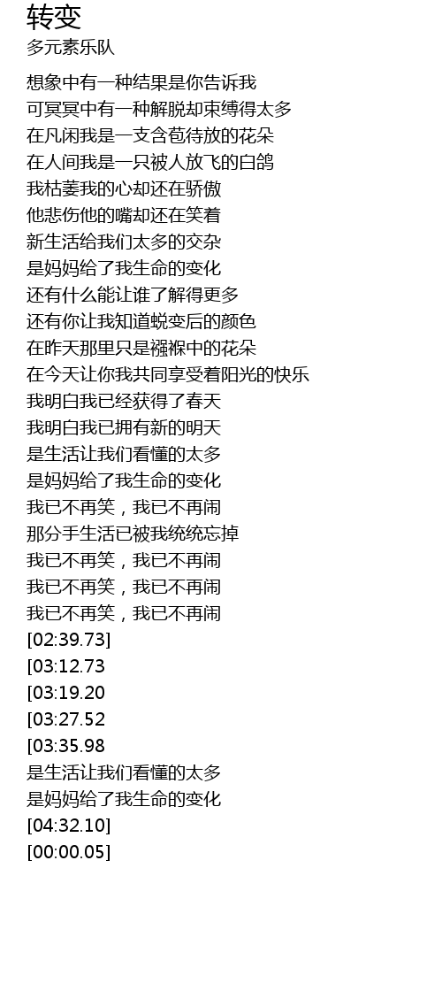 | [04:23.00] | 是妈妈给了我生命的变化 |