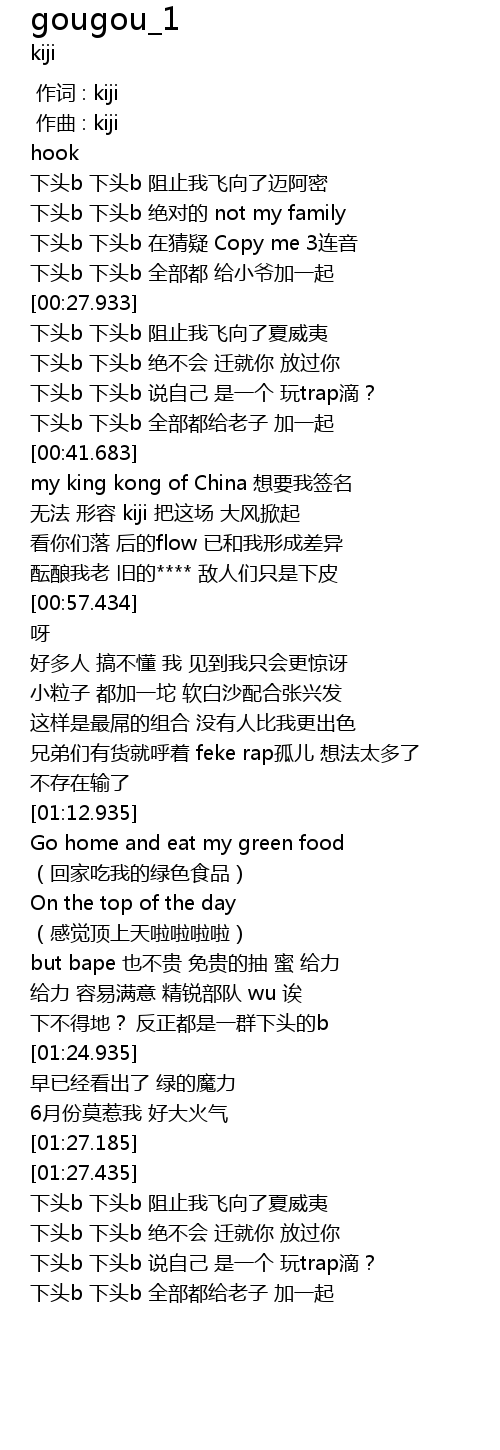 | [00:40.932] | 下头b 下头b 全部都给老子 加一起 |