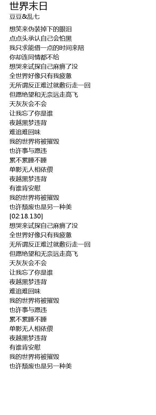 | [02:35.690] | 全世界好像只有我疲惫 |