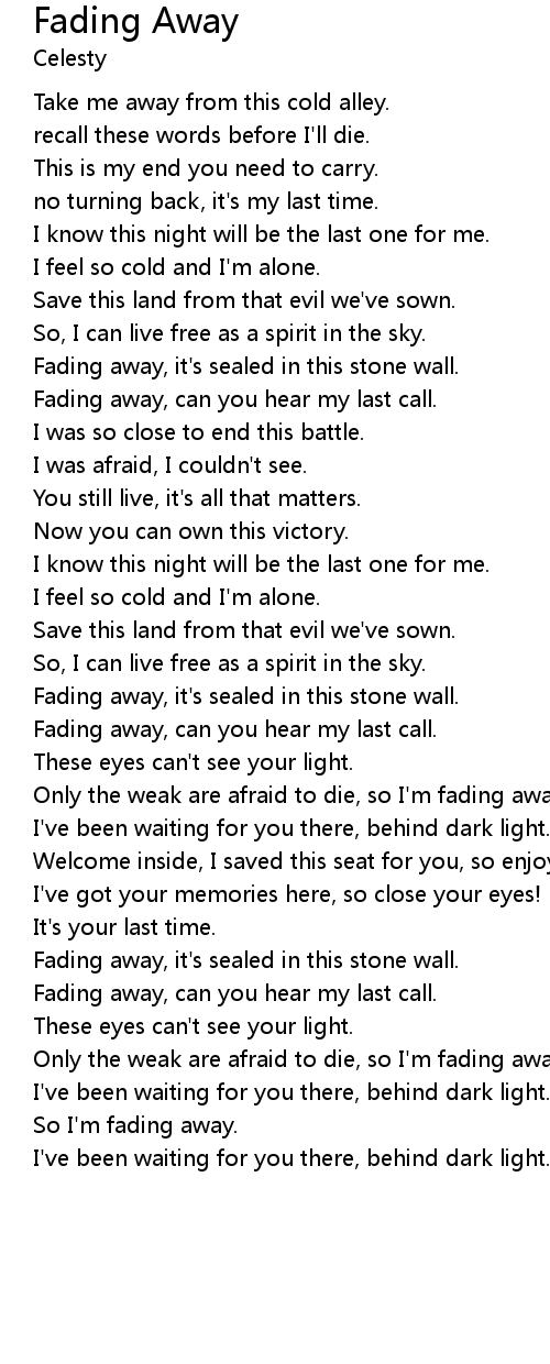 | So I' m fading away. | |