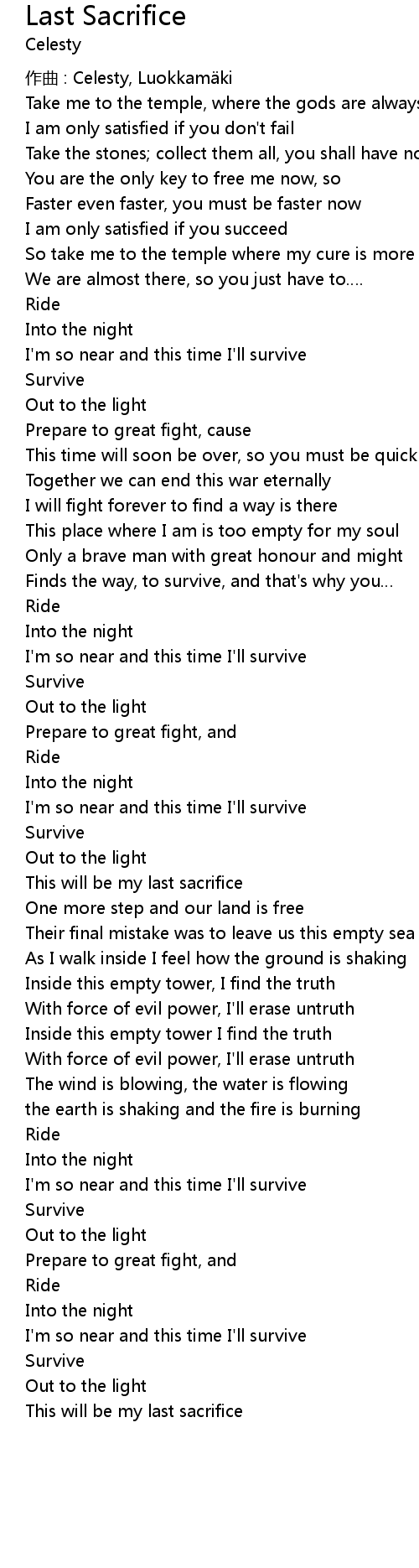 | Song | Last Sacrifice |