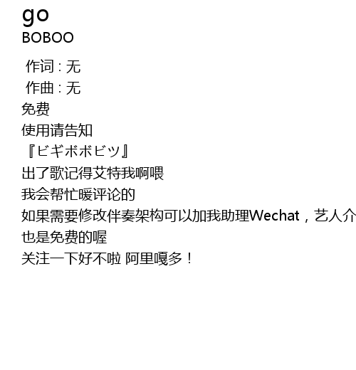 | [00:41.68] | ru guo xu yao xiu gai ban zou jia gou ke yi jia wo zhu li Wechat, yi ren jie shao li you xie |
