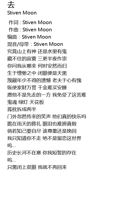 | [00:11.971] | 编曲:Stiven Moon |