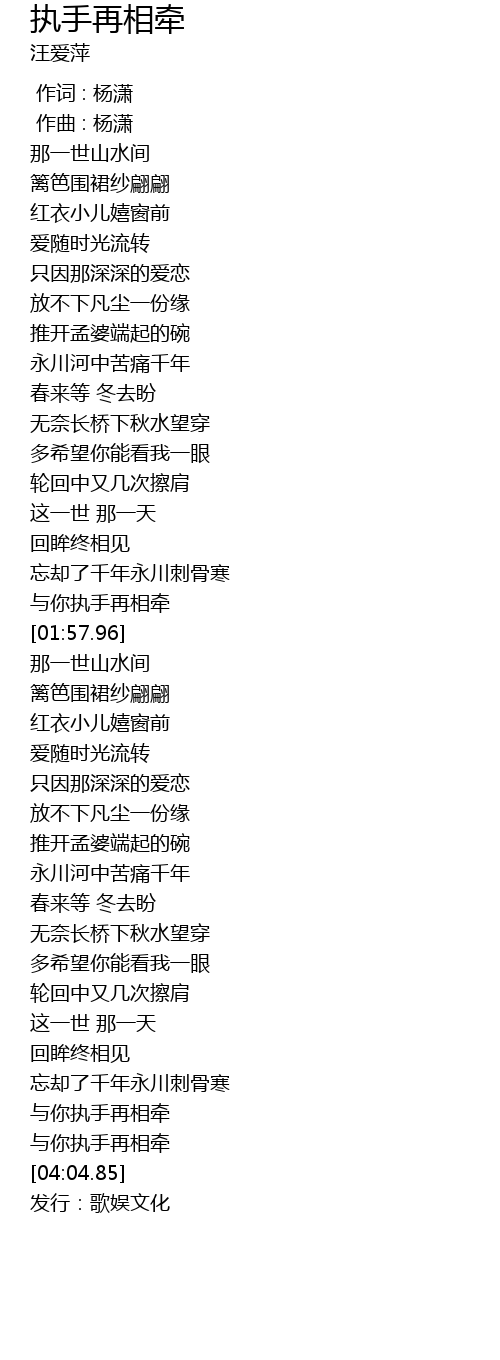 | [01:52.36] | 与你执手再相牵 |