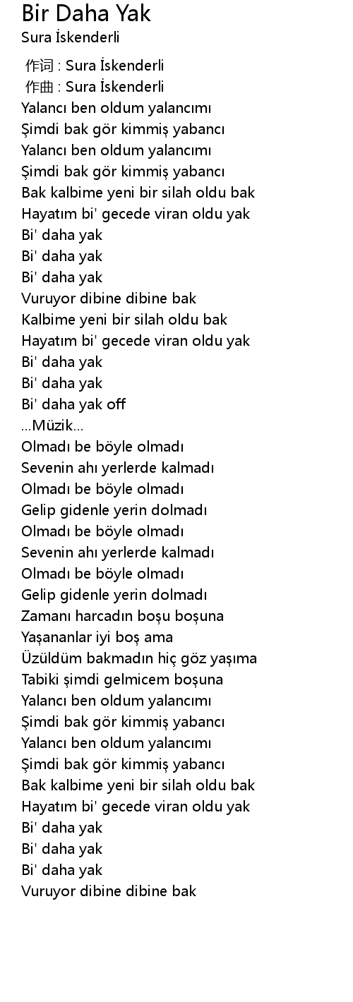 | [00:37.45] | Yalanc ben oldum yalanc m |