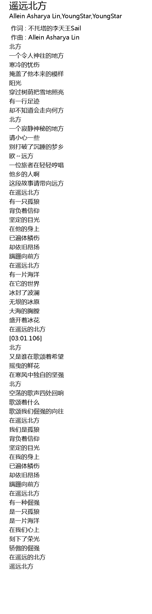 | [04:13.466] | 在遥远北方 |