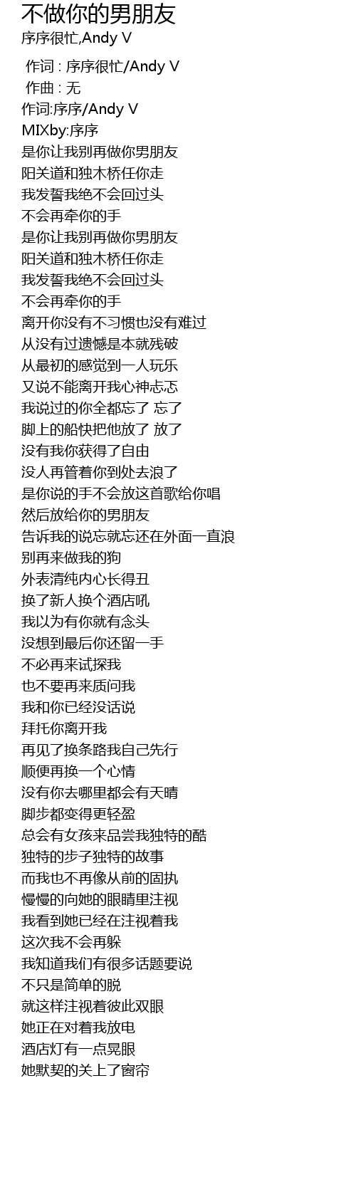 | [00:00.000] | 作词 : 序序很忙/Andy V |