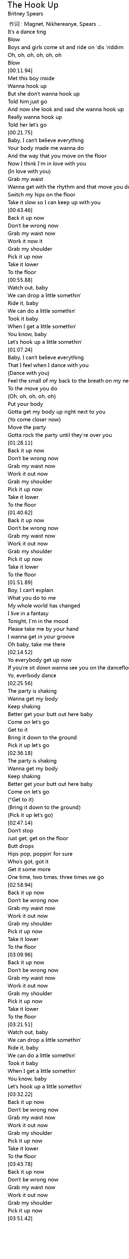 | [00:13.35] | Wanna hook up |