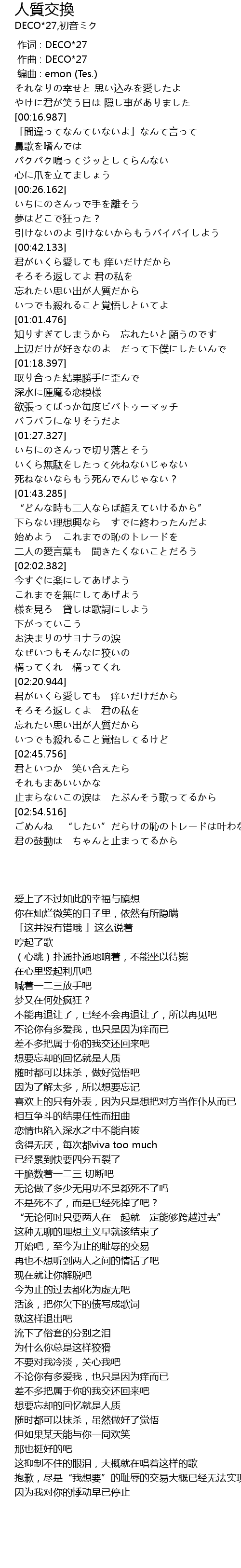 | [00:00.000] | 作词 : DECO*27 |