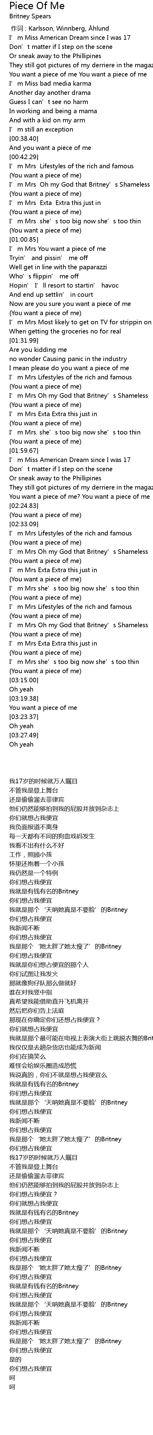 | [03:01.25] | I' m Mrs Oh my God that Britney' s Shameless |