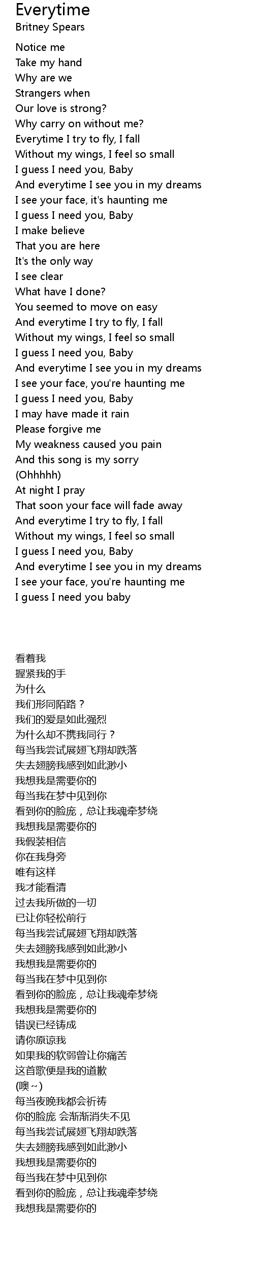 | Song | Everytime |