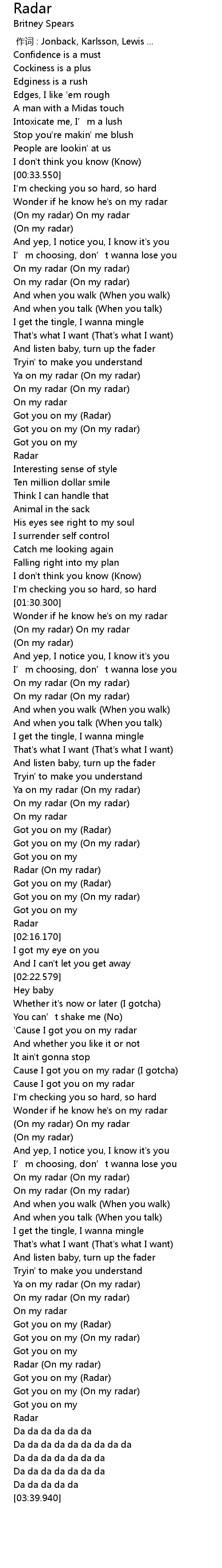 | [00:35.870] | Wonder if he know he' s on my radar |