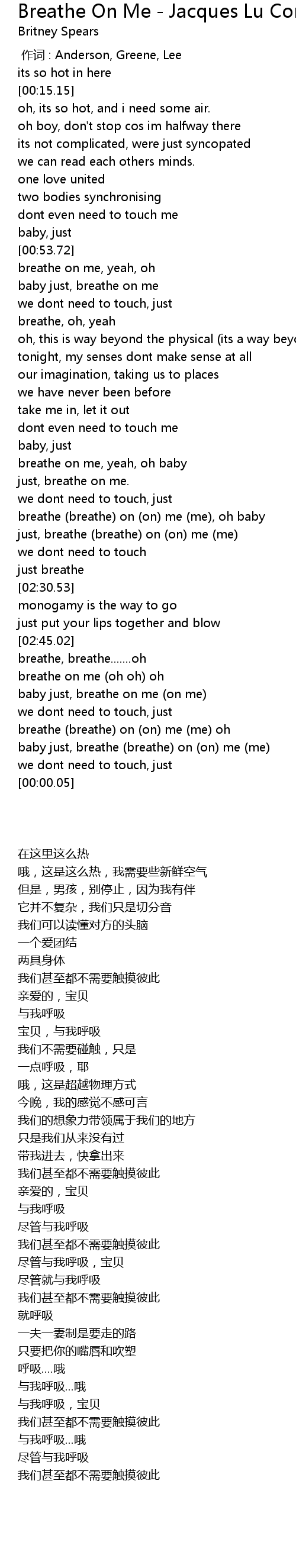 | [03:19.25] | breathe (breathe) on (on) me (me) oh |