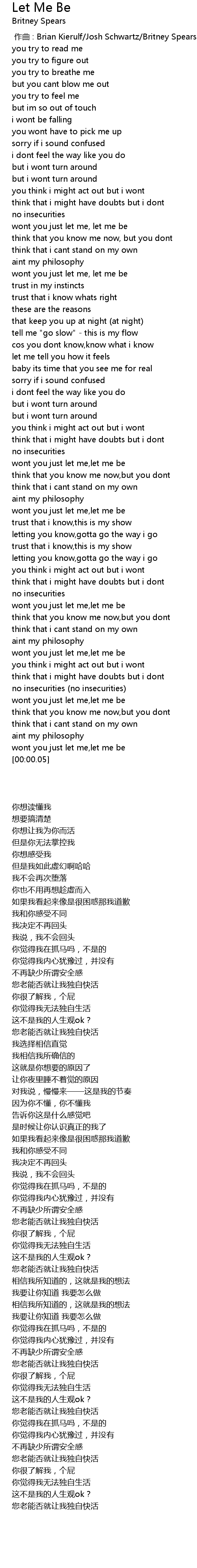 | [01:00.64] | wont you just let me, let me be |