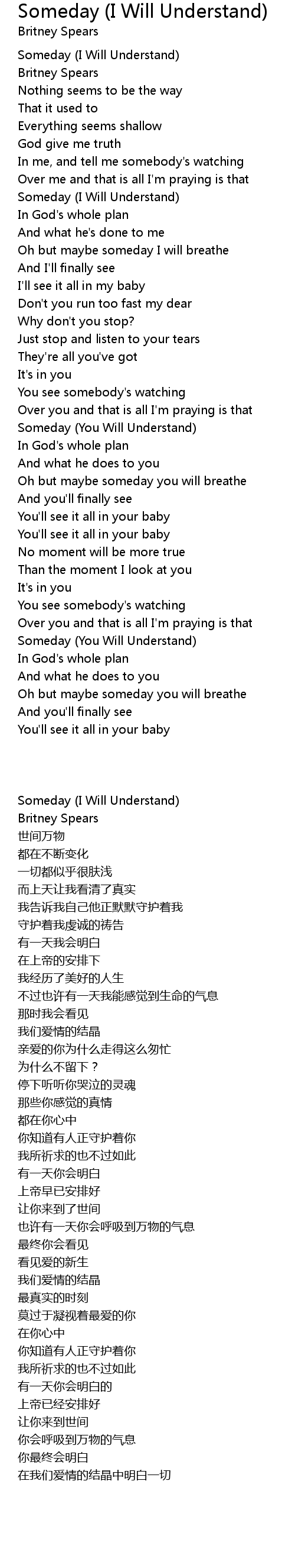 Song Someday (I Will Understand)