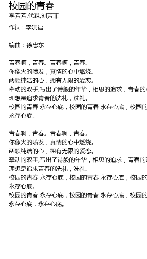 | 校园的青春 永存心底,校园的青春 永存心底,校园的青春 永存心底,永存心底。 |