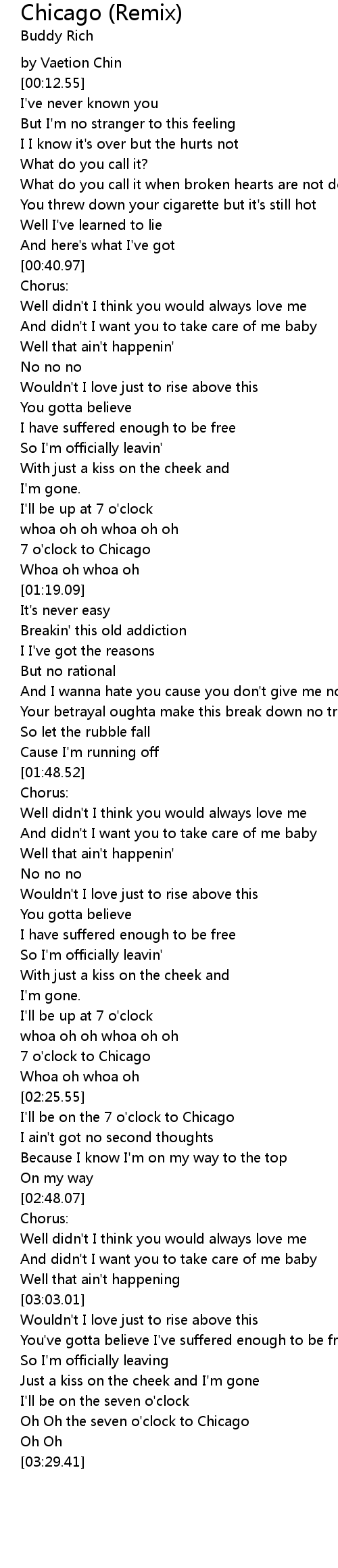 Oh Oh the seven o'clock to Chicago |