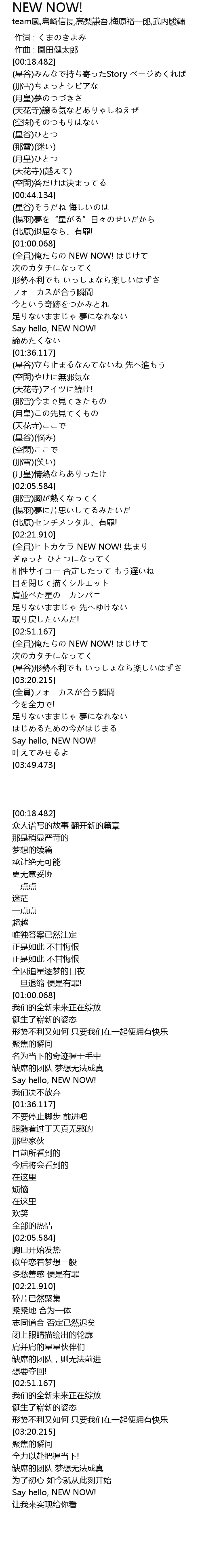 | [02:22.851] | (全員)ヒトカケラ NEW NOW! 集まり |