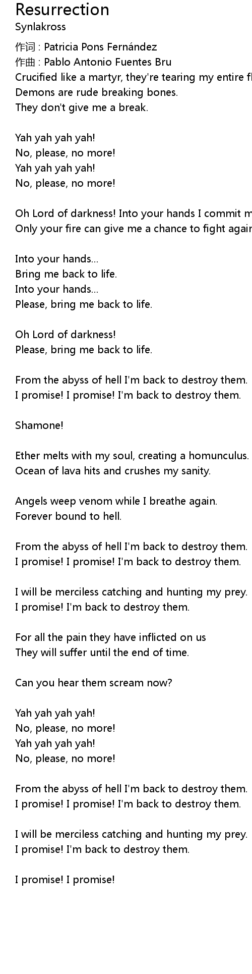 | From the abyss of hell I'm back to destroy them. | |