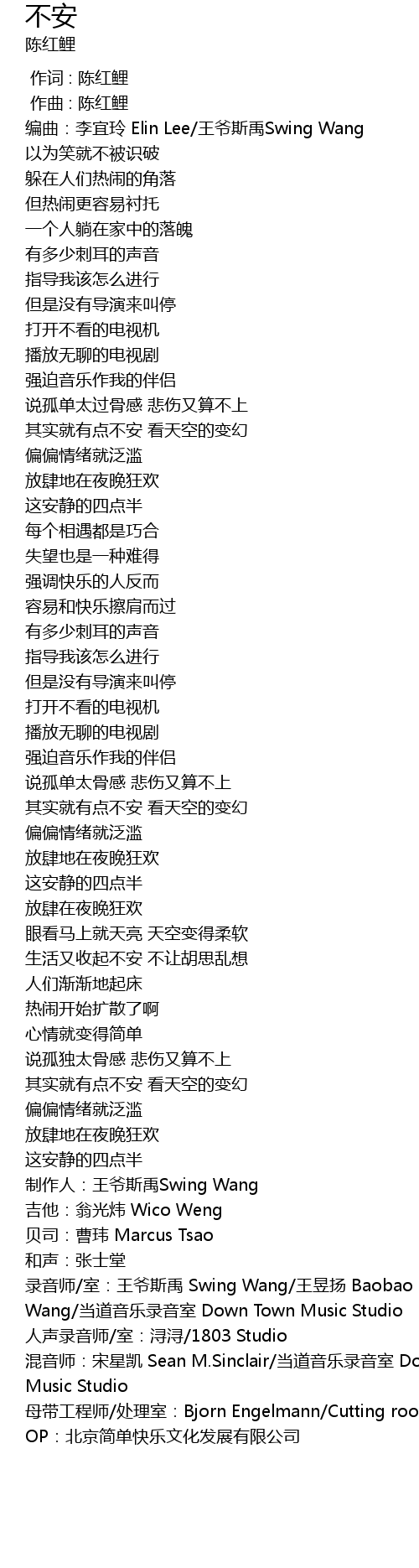 | [03:04.70] | zhi zuo ren: wang ye si yu Swing Wang |