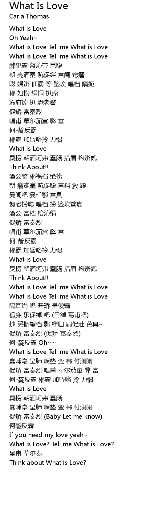 | [02:57.62] | What is Love? Tell me What is Love? |
