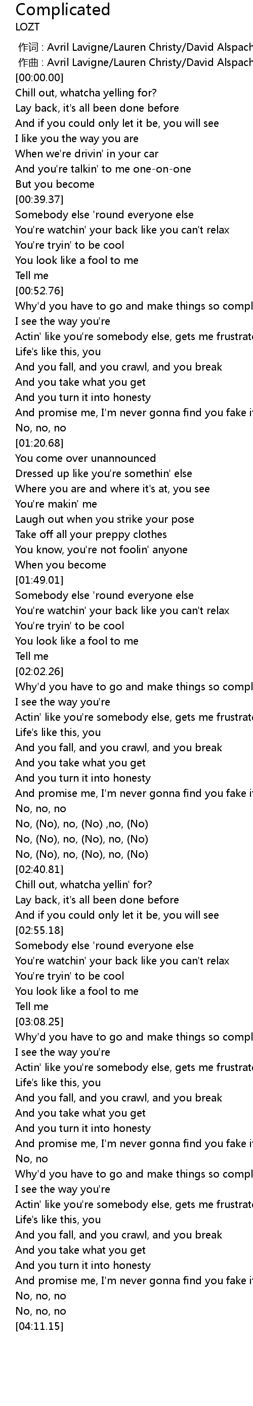 | [00:52.79] | Why'd you have to go and make things so complicated? |