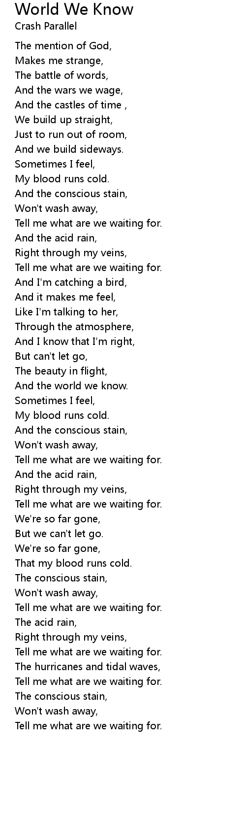 And the world we know. |