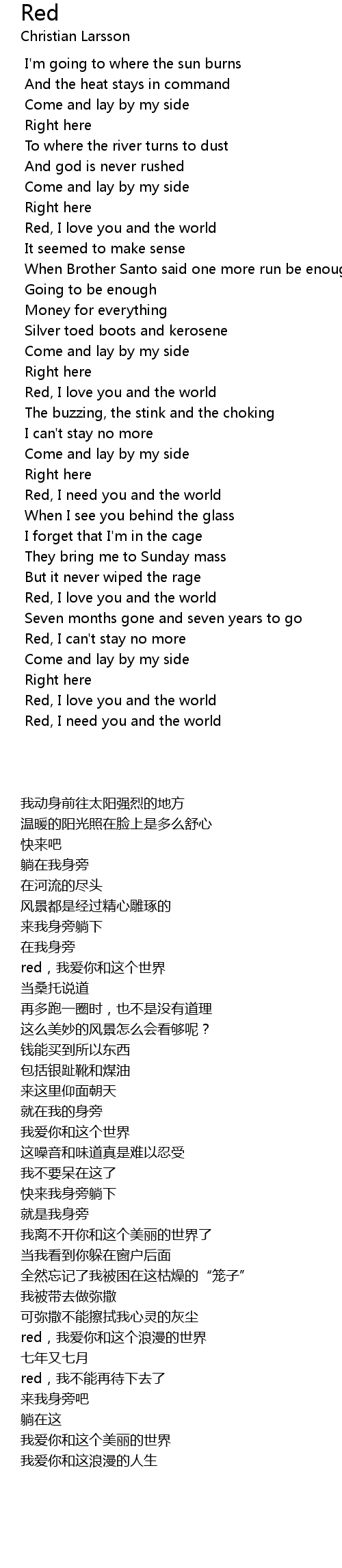 Red, I need you and the world |