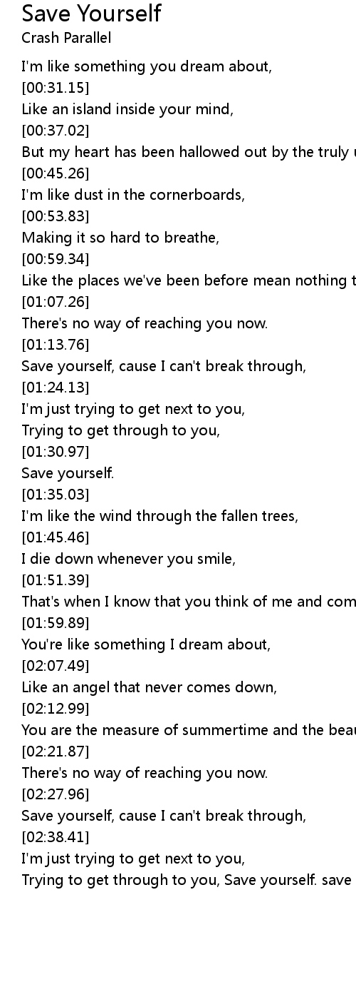 [02:42.65] Trying to get through to you, Save yourself. save yourself