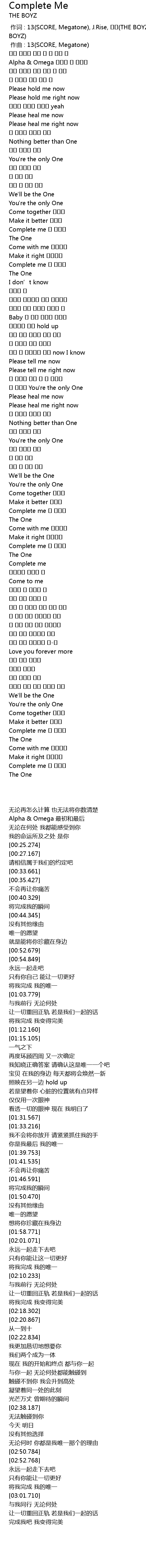 | [02:59.591] | Complete me 내 유일한 |