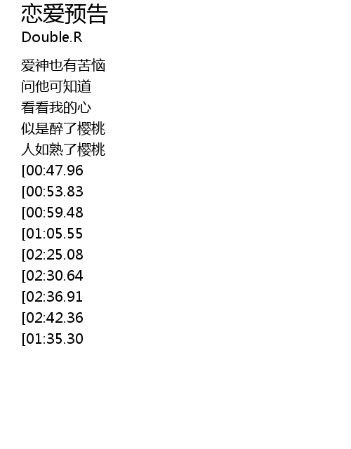 | [03:05.93][02:42.36][01:28.90] | 甜蜜是这恋爱预告 |