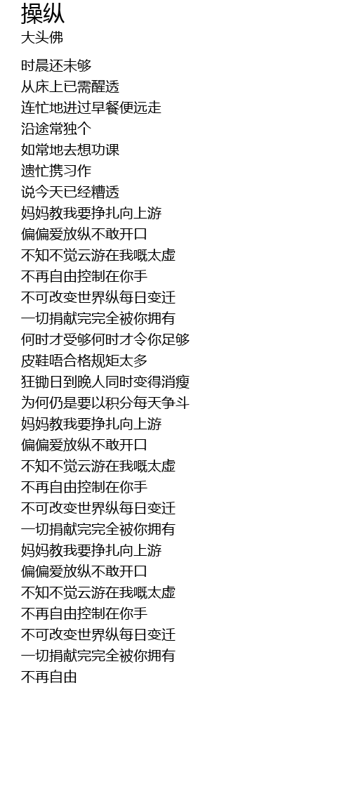 | [01:37.730] | 不再自由控制在你手 |