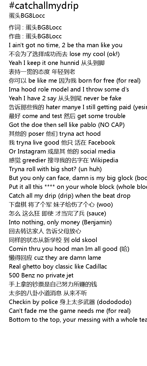 | Catch all my drip drip when the beat drop | |