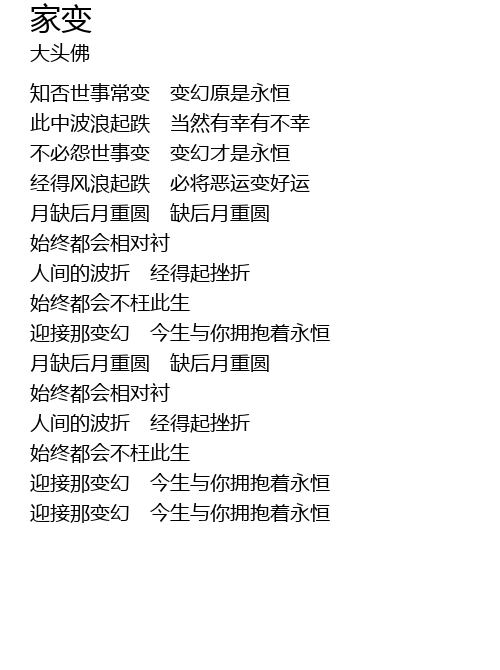 | [00:34.34] | bù bì yuàn shì shì biàn biàn huàn cái shì yǒng héng |