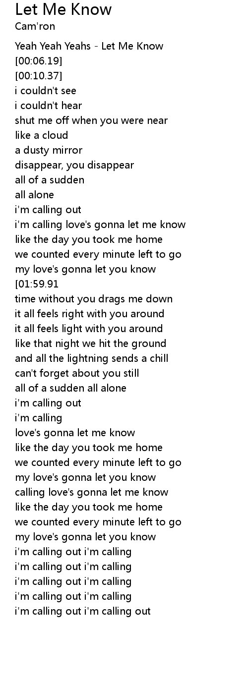calling love's gonna let me know |