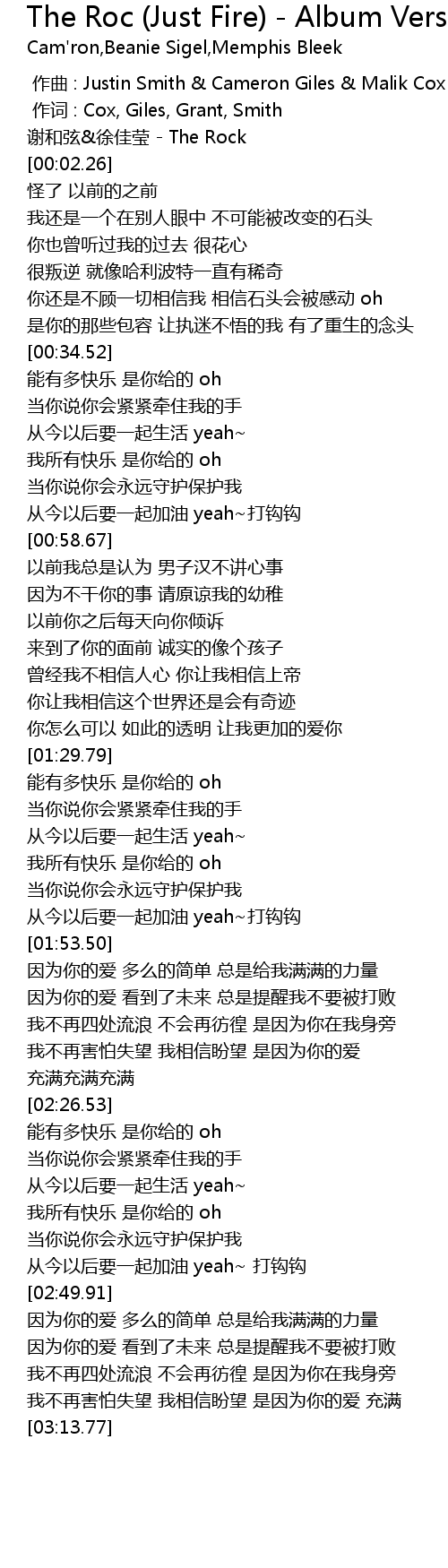 | [00:00.03] | xiè hé xián xú jiā yíng The Rock |