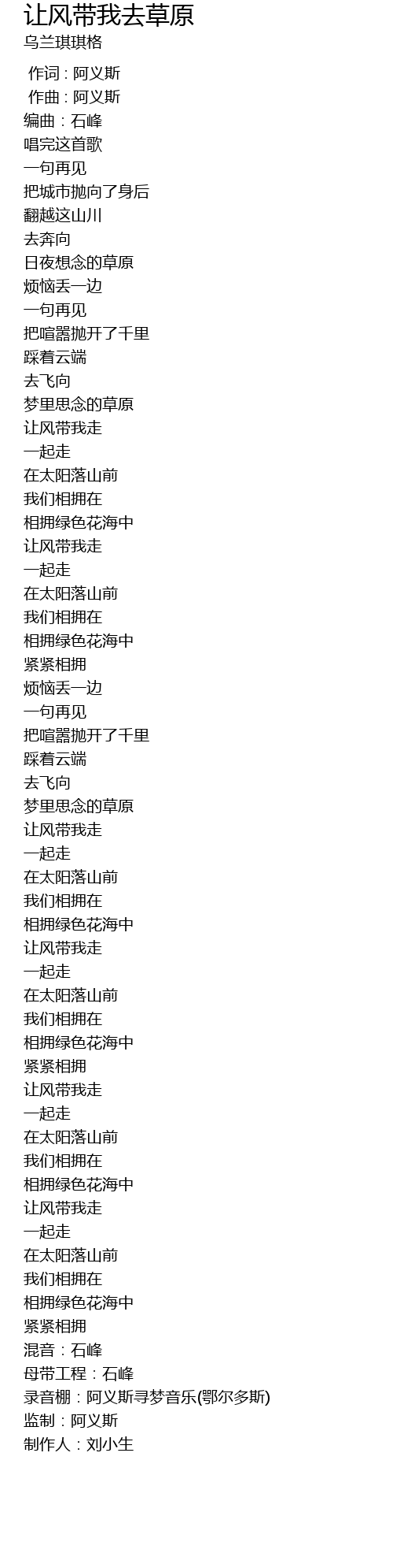 | [01:38.15] | ràng fēng dài wǒ zǒu |